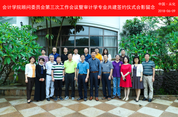6月9日上午,会计学院顾问委员会第三次工作会议暨审计学专业共建签约仪式在专家楼顺利举行。原广东财经大学校长王华教授、原广东省国资委巡视员吴清泉先生、原广东省二轻集团董事长舒海波先生、暨南大学胡玉明教授、广东省注册会计师协会副秘书长葛芸女士、...