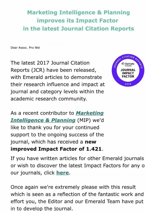 中山大学南方学院商学院吴宏哲、魏久峰、曾丽玉老师,共同合作的论文“What drives green brand switching behavior?”,近期在国际知名SSCI期刊“Marketing Intelligence & Planning”发表。 该论文具有原创性价值,...