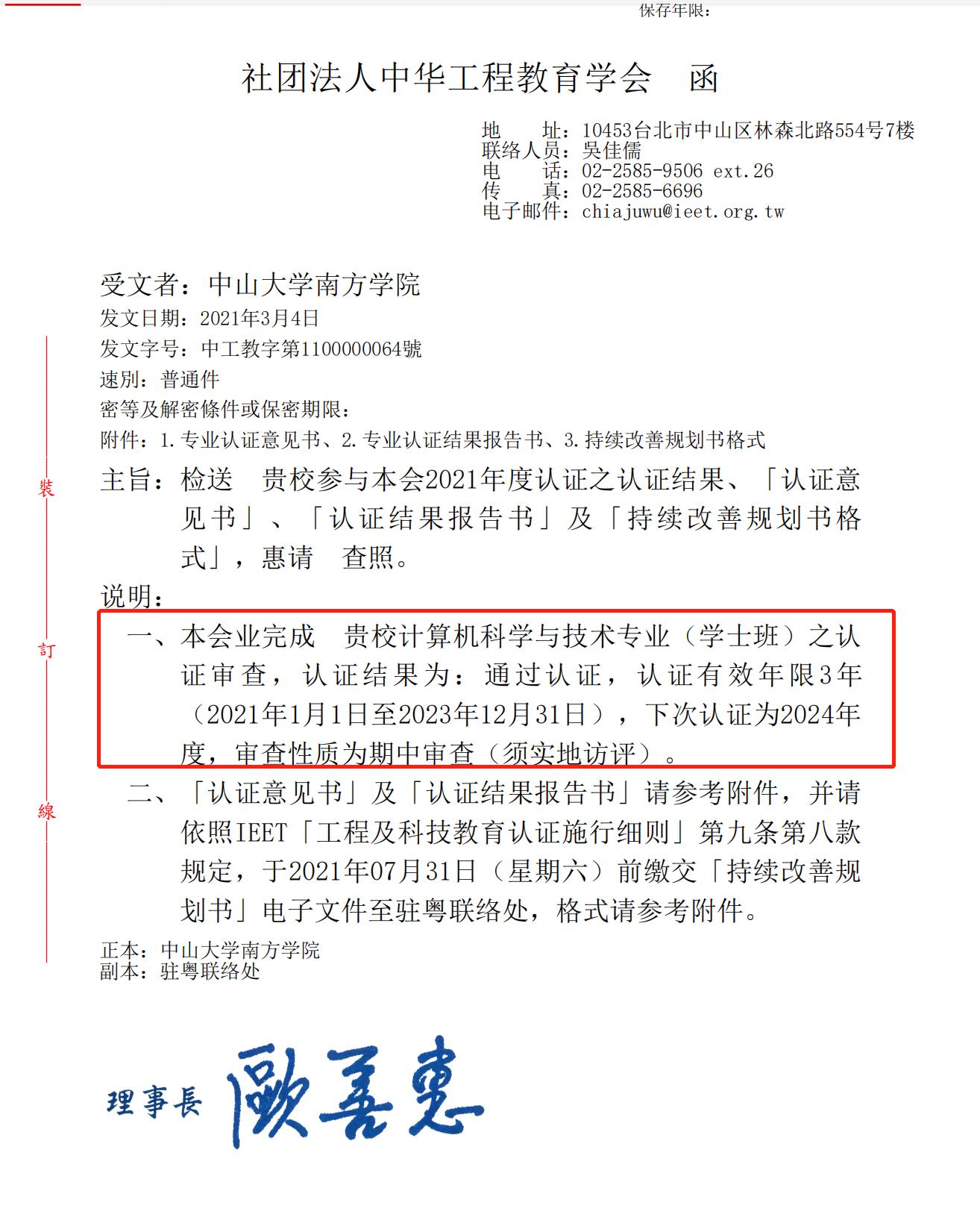 近日,中国台湾中华工程教育学会(Institute of Engineering Education Taiwan,简称IEET)公布了2021年度专业认证结果,申搏电气与计算机工程学院(以下简称“电气学院”)计算机科学与技术专业顺利通过IEET资讯教育认证(...
