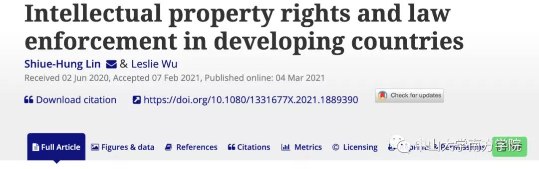 2021年3月4日,政商研究院2016级学生胡志翔作为第二作者提交的论文在国际期刊《Economic Research-Ekonomska Istrazivanja》发表,题为《Intellectual property rights and law enforcement in developing countries》...