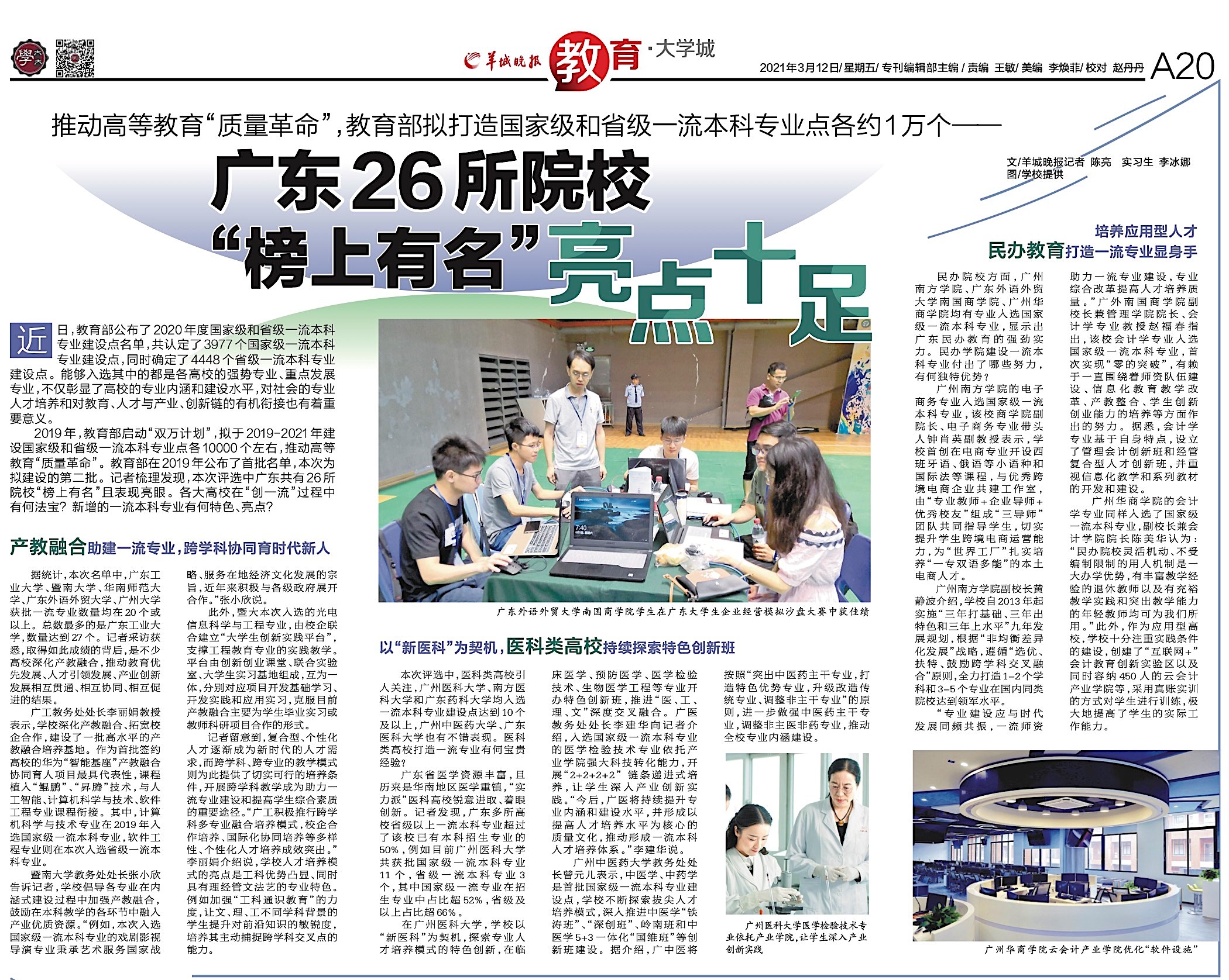 编者按: 3月12日,《羊城晚报》刊发长篇报道,介绍广东省高等院校入选国家级和省级一流本科专业建设点情况,申搏副校长黄静波教授、商学院副院长、电子商务专业带头人钟肖英副教授接受了记者采访,介绍申搏连续两年入选国家级一流本科专业建设点名单,...