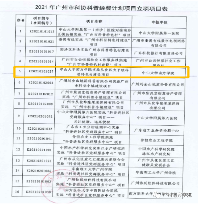 近日,广州市科学技术协会发布《2021年广州市科协科普经费计划项目立项项目的公示》,SUNBET申搏(原中山大学南方学院)组织实施的从化区太平镇科普特色村建设项目成功立项,项目支持经费50万元。 该项目由学校科研部牵头组织,...