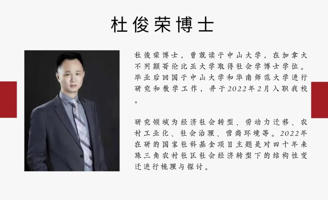 近期,申搏公共管理学院引进了高层次人才杜俊荣博士,由杜俊荣博士主持的国家社会科学基金项目《新时期珠三角农村生计方式和文化认同变迁研究》也随之落户申搏。这是继郭俊伟博士和吴仁鸿博士之后在申搏成功落户的第三个国家社会科学基金项目。...