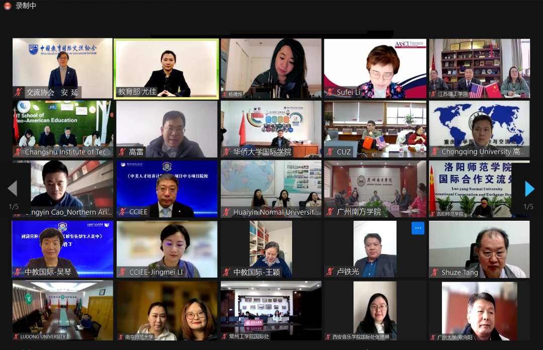 近日,由中国教育国际交流协会支持、中教国际教育交流中心主办的“2022年《中美人才培养计划》121项目中方项目院校工作会议”在线上顺利召开。来自全国26个省(自治区、直辖市)的50所高校代表约160人参加了此次会议。...