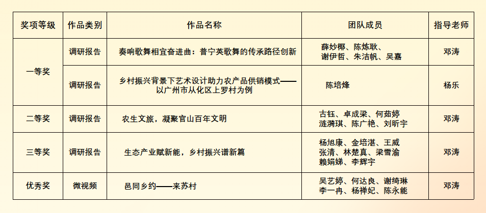 近日,广东省2022年“多彩乡村 弘扬岭南文化”主题教育实践活动组委会公布了本年度优秀作品、优秀团队及优秀组织单位名单,由申搏马克思主义学院教师邓涛、杨乐指导的多支学生队伍在本次活动中再创佳绩,取得新突破,...