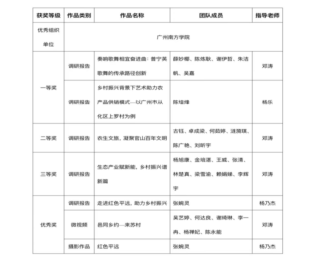 近日,广东省2022年“多彩乡村 弘扬岭南文化”主题教育实践活动组委会公布了本年度优秀作品、优秀团队及优秀组织单位名单。申搏校团委组织选送的作品从众多高校作品中脱颖而出,斩获一等奖2项,二等奖1项,三等奖1项,...