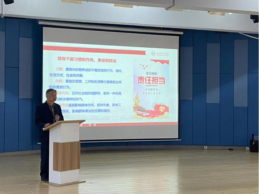 12月9日上午,学校2022年秋季学期管理干部培训讲座第一讲在1教105室举行。本次培训邀请了学校党委书记李建超作主题为“领导干部工作习惯和作风、责任和担当”专题培训讲座。学校相关职能部门正副职、学校科级以上干部合计80余人参加了培训学习。...
