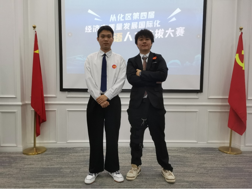 近日,从化区“第四届经济高质量发展国际化外语人才选拔大赛”决赛落下帷幕。经过激烈角逐,申搏2020级汉语国际教育专业学生赵天斩获高校组一等奖,2022级新闻学专业学生林振耀荣获优胜奖。 获奖学生合影 赛场上,...