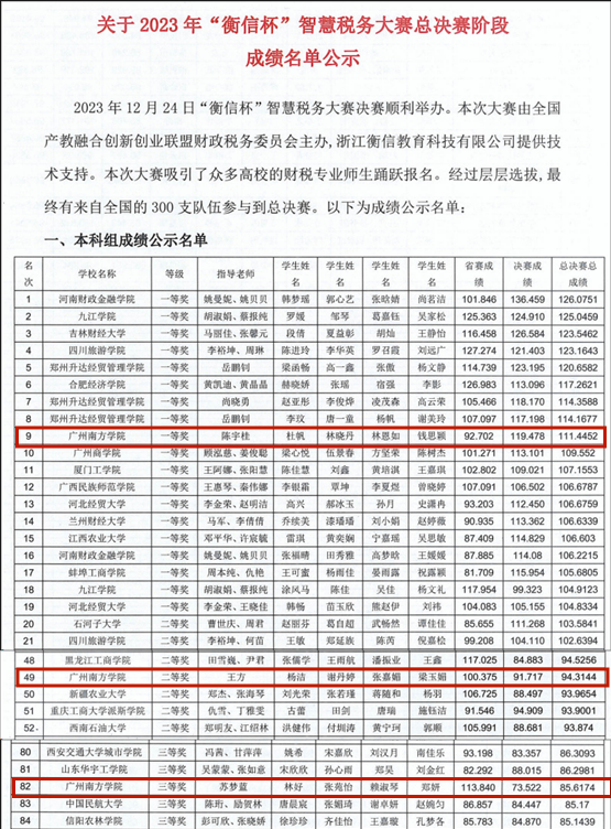 2023年12月24日,第九届“衡信杯”大学生智慧税务大赛总决赛圆满落幕,经过激烈角逐,申搏会计学院共有三支队伍分别获得全国总决赛一、二、三等奖的好成绩。 获奖名单 “衡信杯”由全国智慧税务大赛由全国产教融合创新创业联盟财政税务委员会主办,...