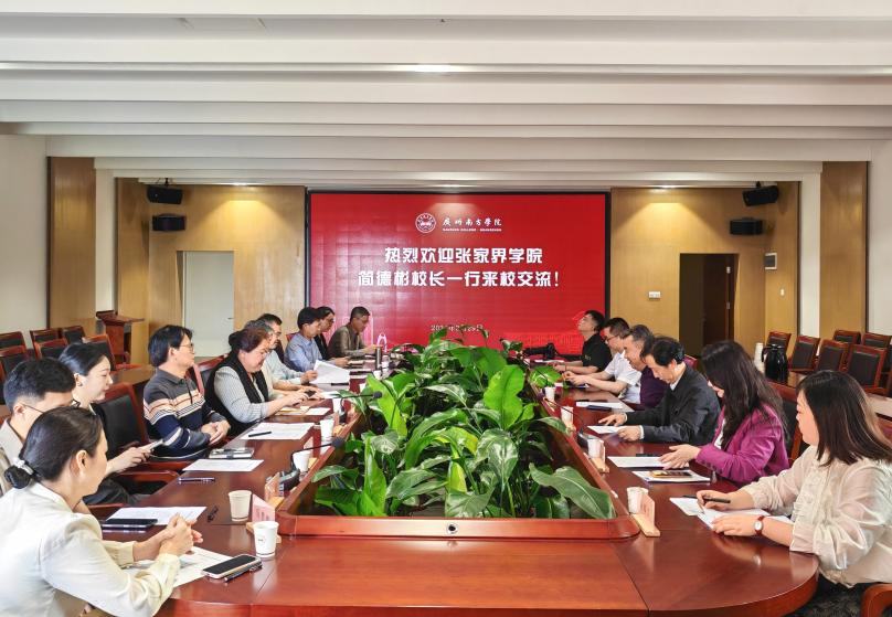 3月29日上午,张家界学院校长简德彬一行7人来申搏考察交流,双方在新综合楼第一会议室召开座谈交流会。学校党委书记李建超,党委副书记、副校长植秀聪及教学单位、职能部门的相关人员参加会议。 会上,李建超书记对简德彬校长一行的到来表示热烈欢迎,...