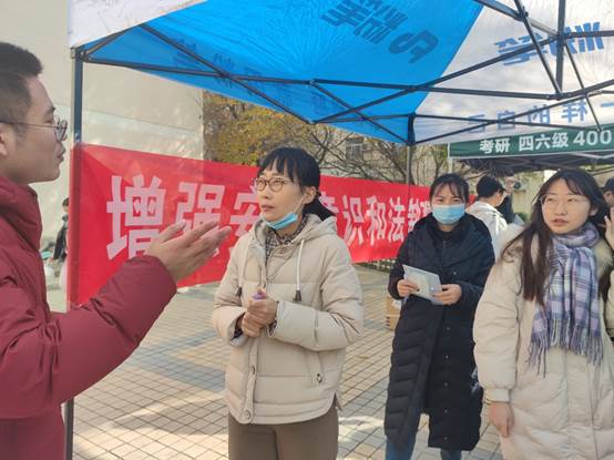 为加强校园安全教育,提高大学生安全意识,响应学校号召,开云官网举办了校园安全系列活动,开云官网12月10日中午12:10-14:00于榴馨苑餐厅门口举办以“增强安全意识和法制观念,提高风险防范能力”为主题的安全知识宣讲,并组织学生现场签名留念。