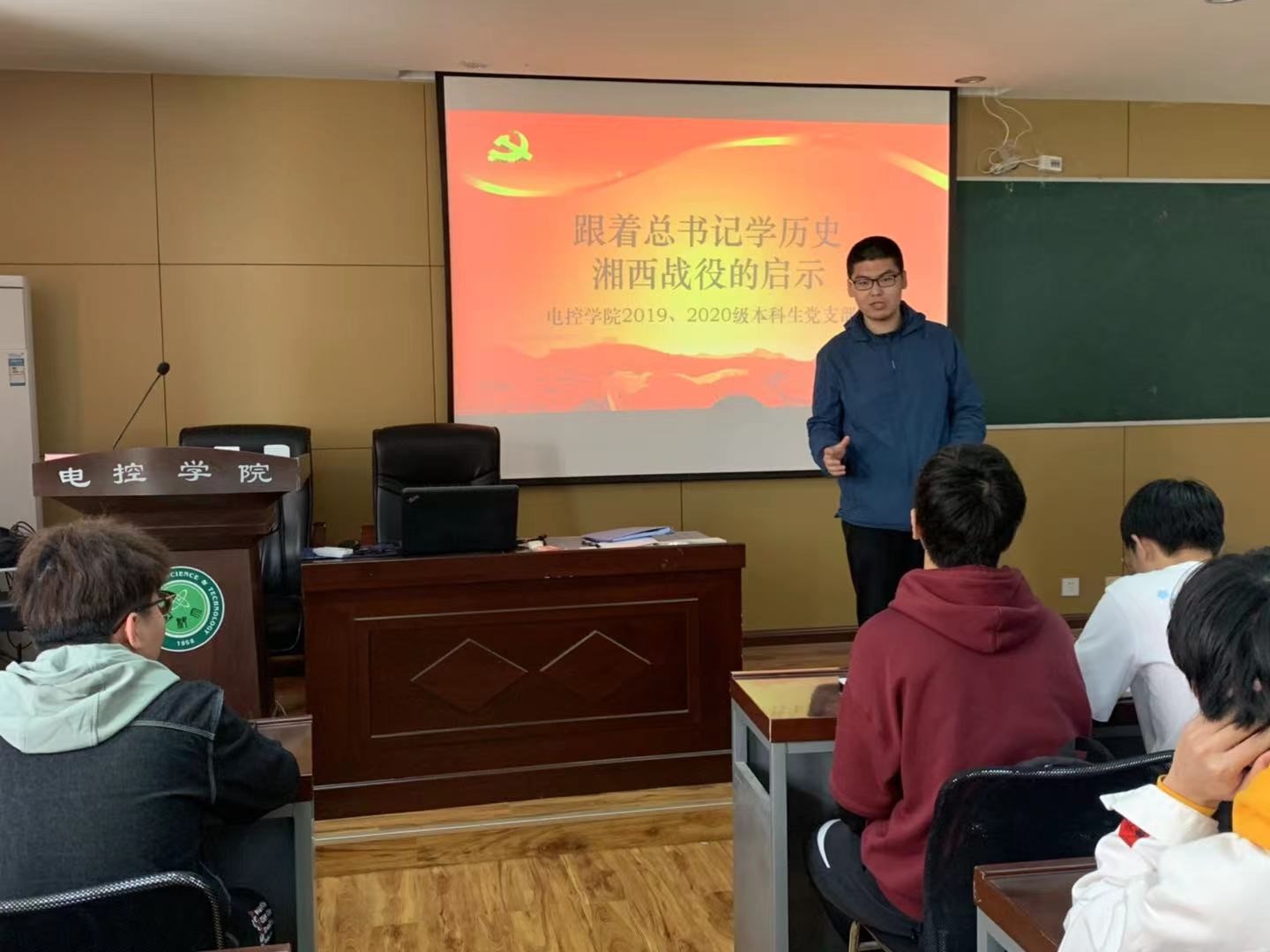 4月25日,习近平总书记赴广西考察,首站来到位于桂林市全州县的红军长征湘江战役纪念园。这里正是当年湘江战役中脚山铺阻击战的战场遗址所在地。总书记曾经多次谈起这场惨烈的战役。80多年过去,硝烟已散,思考远未停止。为加强支部党员党史知识学习,2021年4月28日开云官网2019、2020级本科生党支部于17-318会议室开展“跟着总书记学历史-湘西战役的启示”主题学习活动。
