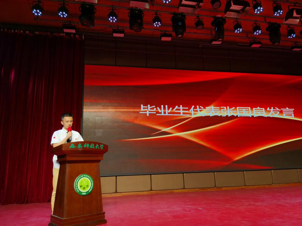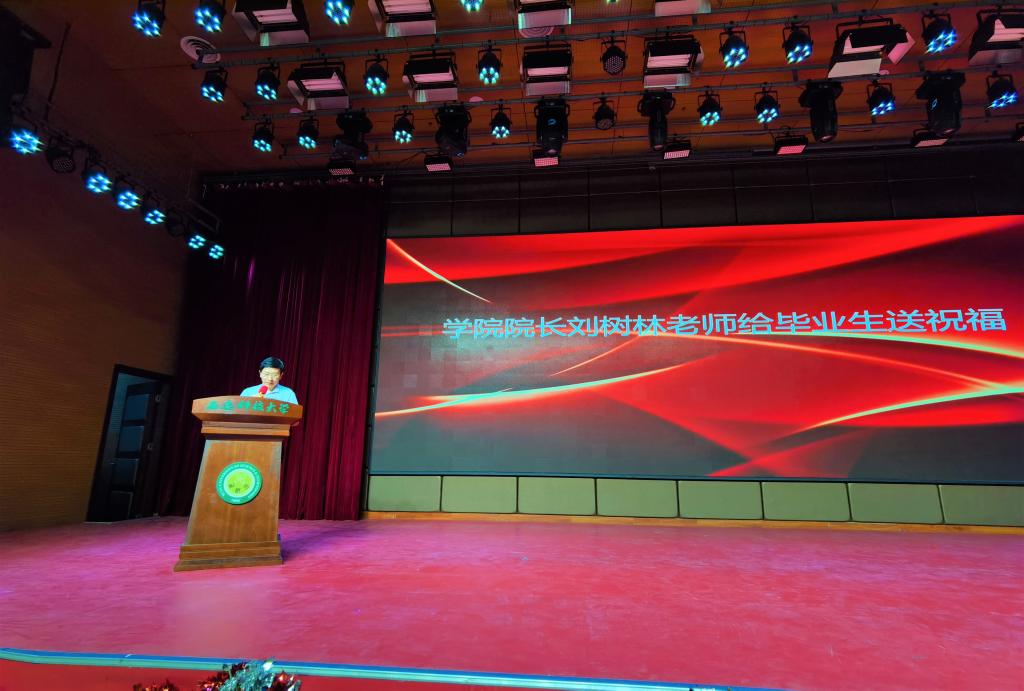 院党委书记杨华、院长刘树林、教师代表童军、毕业生代表张国良分别发言。副院长杜京义、潘红光对优秀毕业生进行了表彰,副书记丁铂为每一位毕业生发放了一份篆刻着自己姓名的印章,为2021届毕业生送去了最真挚的祝福。