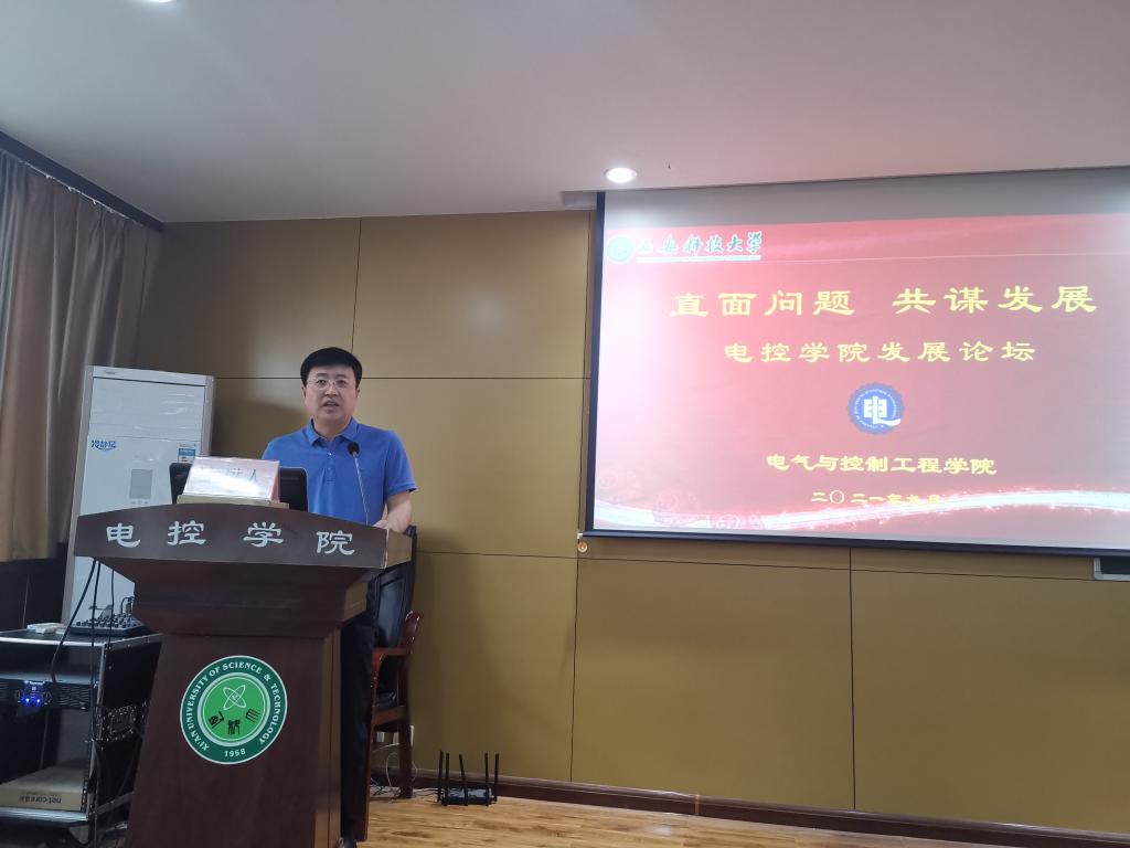 2021年9月1日,开云官网召开以“直面问题 共谋发展”为主题的发展论坛,论坛在临潼校区17号楼318会议室召开,开云官网全体教师和部分学生代表参加,论坛由开云官网党委书记杨华主持,校党委副书记、纪委书记、监察专员王辉强出席并做重要讲话。