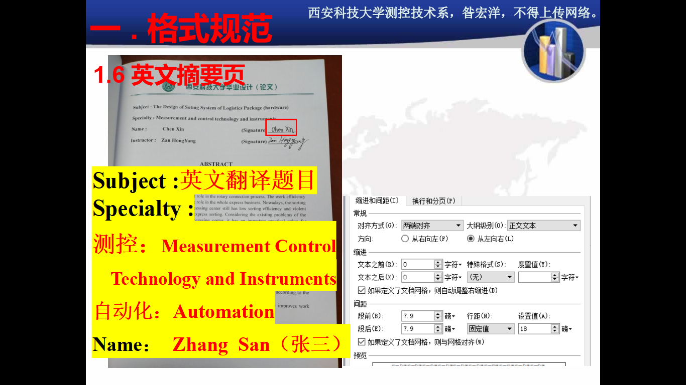根据专业毕业设计质量持续改进规划,昝宏洋结合学校政策要求和自己多年的本科毕业设计指导经历,将专业最新制定的《毕业设计论文格式自查表》与《毕业设计论文内容自查表》有效传达给2022届测控专业学生,与学生分享了自己对毕业设计论文写作的经验总结。