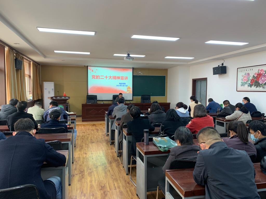 杨华指出,全院师生要认真学习领会党的二十大精神,立足学院发展实际,紧密结合学校“十四五”发展规划和第十一次党代会确定的发展目标,全面贯彻党的教育方针,落实立德树人根本任务,不断提高人才培养质量,切实把党的二十大精神转化为履职尽责的实际行动。