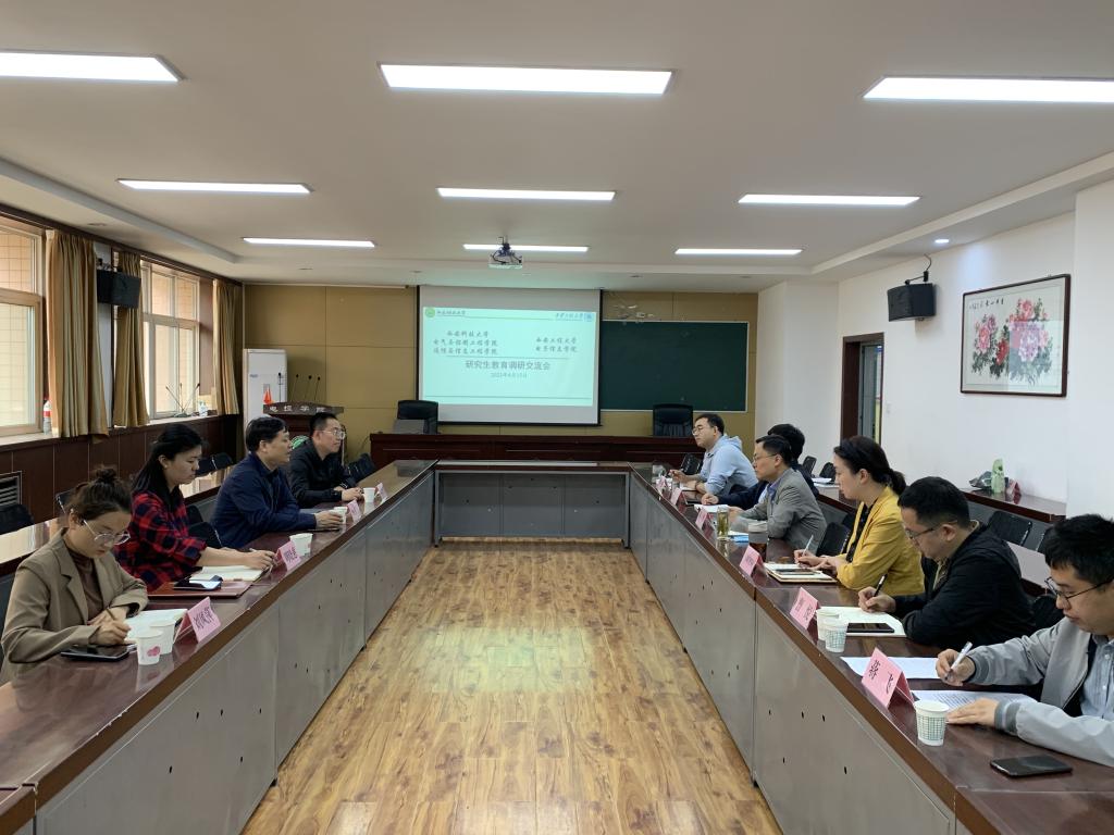 4月17日上午,西安工程大学电子信息学院党委书记杨友谊、党委副书记周晓惠、研究生辅导员周梦宇及辅导员刘风萍一行4人到我院就研究生教育管理工作开展调研交流。学院党委书记杨华、副书记马婧智闻、副院长潘红光、研究生辅导员李逸及通信学院研究生教务员曹悦、辅导员蒋飞参与会议。