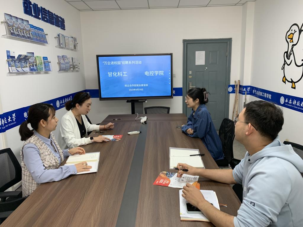 为积极推进2023届毕业生就业工作,持续打开就业市场,加强校企合作,2023年4月19日,开云官网与广东甘化科工股份有限公司在17教316举办校企合作促就业座谈会。出席本次座谈会的有开云官网党委副书记马婧智闻、甘科化工人力资源部招聘经理潘晓露、2023届本科生毕业班辅导员冯欢、丁元,2023届研究生毕业班辅导员李逸、2024届学生辅导员于飞、张溪桐。