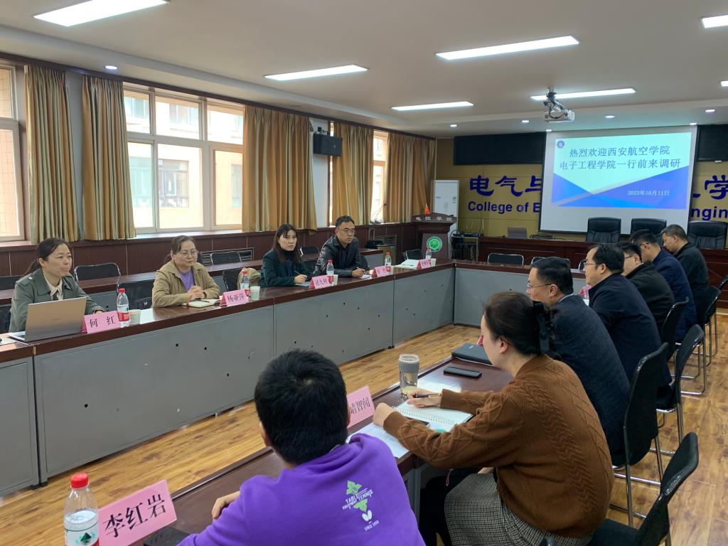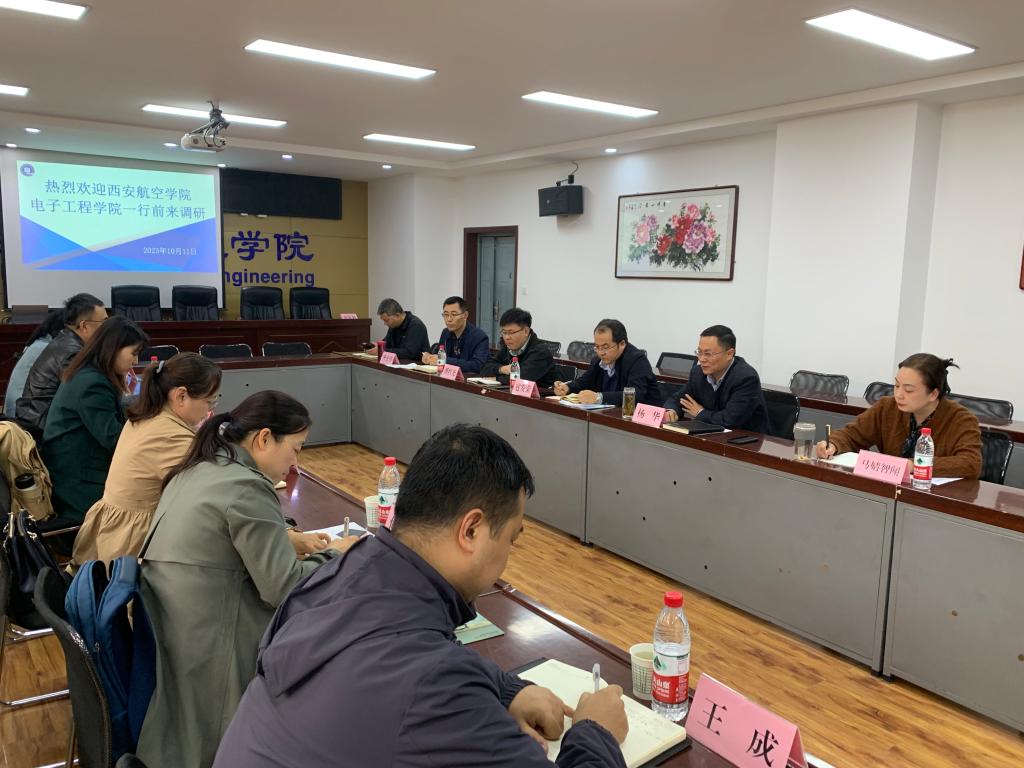 10月11日,西安航空学院电子工程学院院长杨亚萍一行6人来我院就工程教育专业认证工作进行调研交流。党委书记杨华、院长寇发荣、党委副书记马婧智闻、副院长潘红光、测控技术系主任昝宏洋参加了本次调研交流会议。