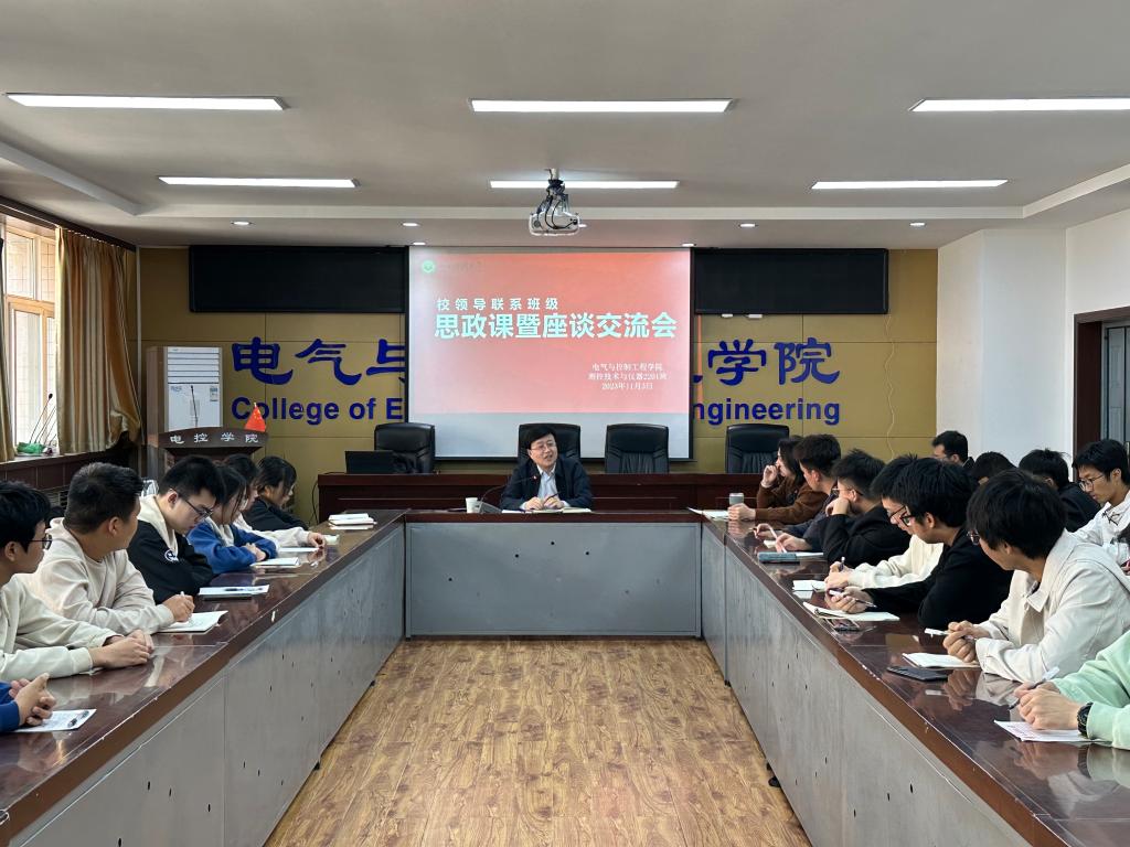 2023年11月3日下午,校党委副书记、纪委书记、监察专员王辉强深入开云kaiyun体育,在十七号教学楼318会议室与测控技术与仪器2201班全体同学进行了亲切的交流座谈,并为同学们带来了一堂生动的思政课。开云官网党委副书记马婧智闻、辅导员赵晨及全班同学参加。