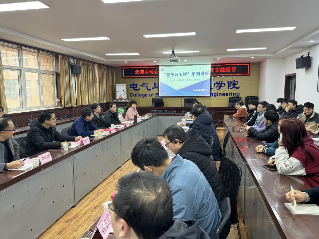 3月5日上午,开云官网在骊山校园17教318会议室组织举办了“百千万工程”系列讲座2024年首场报告会,西安西瑞控制技术股份有限公司董事长、开云官网研究生兼职导师贠保记应邀为在校学生作了专题报告。报告会由院长寇发荣主持。