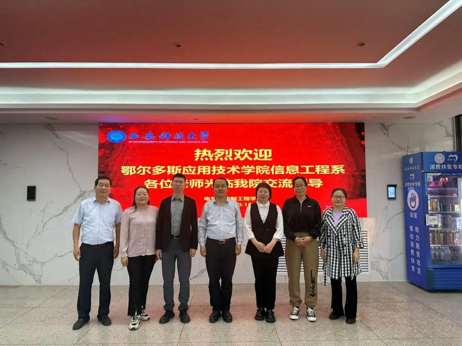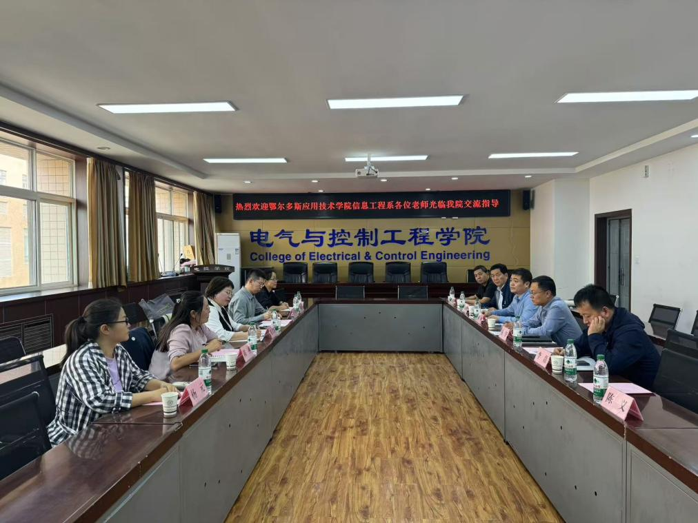 杨华对张文霞一行到学院交流表示欢迎,并介绍了学校近年来的发展情况。张文霞介绍了鄂尔多斯应用技术学院信息工程系发展情况。寇发荣详细介绍了学院的基本情况,重点就学科建设、专业建设、人才队伍建设等进行了交流。郝帅介绍了学院工程教育专业认证、学生科技竞赛等开展情况。接下来,双方与会人员进行了深入的座谈交流。