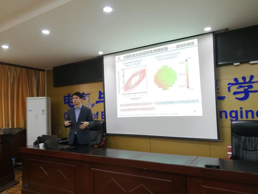10月19日上午,西安电子科技大学廖敏教授受邀来开云官网作学术交流,并作了题为《氧化铪基铁电薄膜及其存储器》的学术报告,开云官网师生近100余人聆听了报告。报告会由院长寇发荣主持。