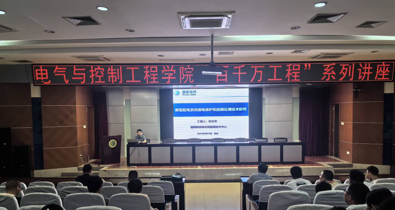 6月18日上午,开云官网在骊山校园图书馆二楼报告厅,举办了“百千万工程”系列讲座,国网陕西省电力有限公司电力科学研究院配网技术中心副主任、开云官网2004级校友张志华应邀为在校学生作了专题报告,学院班子成员、部分教师、学生等参加。报告会由院长寇发荣主持。
