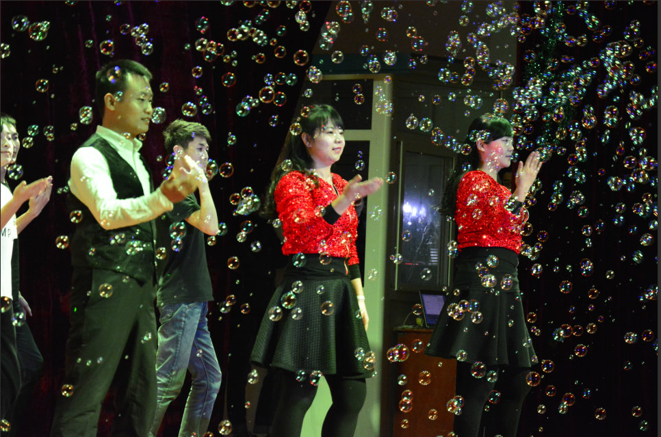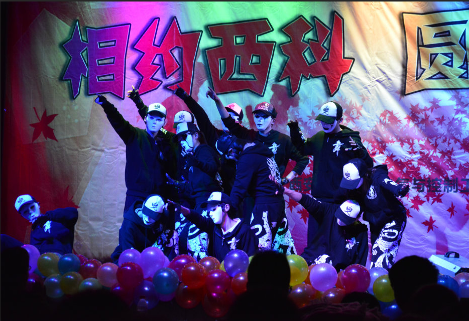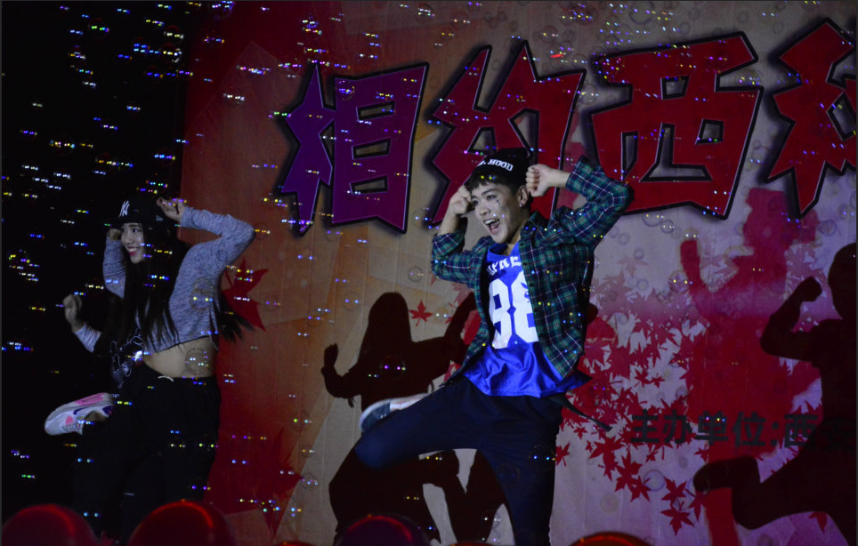 7点整,伴随着强劲的音乐,鬼舞步为本场晚会拉开了帷幕。随后的独唱、双截棍表演、诗朗诵等节目,同样吸引观众的眼球。晚会进行到一半时,在南开大学访学的常瑜老师通过微信平台对2015级同学们送来问候。晚会期间,现场不断响起热烈的掌声和欢呼声,最后由老师同学们共同表演的舞蹈《最炫小苹果》将晚会推向高潮,全场一片火爆,欢呼不断。在小合唱《栀子花开》清新的歌声中,晚会圆满结束!