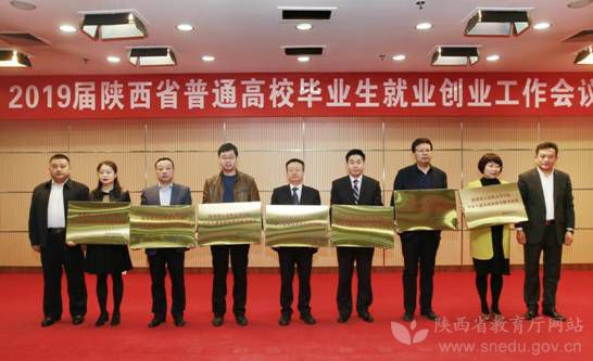 会上,表彰了获得第四批陕西省示范性高等学校毕业生就业创业指导服务机构的7所高校并为他们授牌,省内5所高校从不同方面作了大会交流发言。