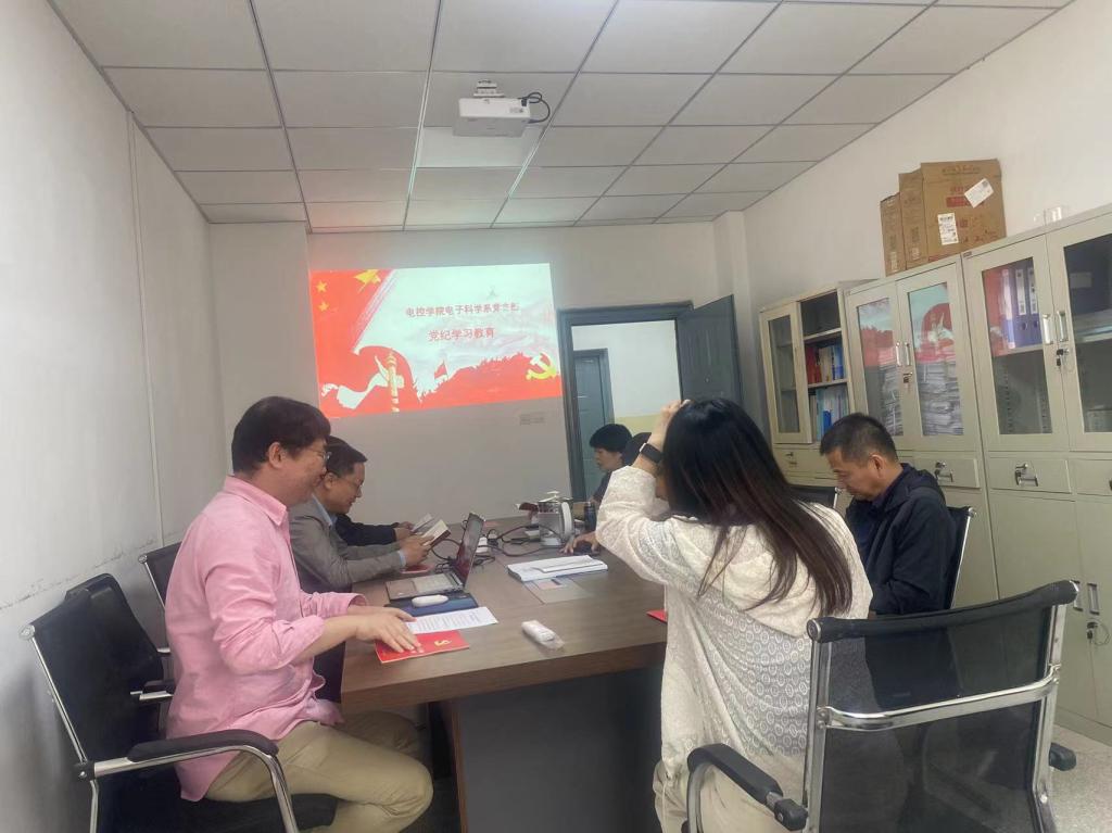 2024年4月15日,开云官网电子科学系党支部在17号教学楼307召开党纪学习教育大会。支部书记张超主持本次大会,全体党支部成员参加学习。