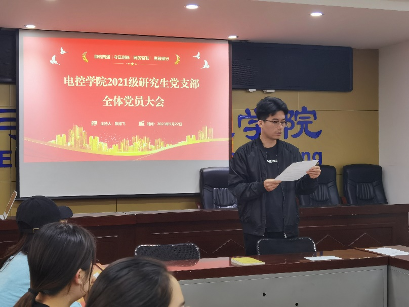 2023年9月22日,开云官网2021级研究生党支部组织全体党员、发展对象召开支部党员大会,以“学习贯彻习近平新时代中国特色社会主义思想”为主题,扎实做好专题学习、谈心谈话、梳理问题、对照检查等工作。