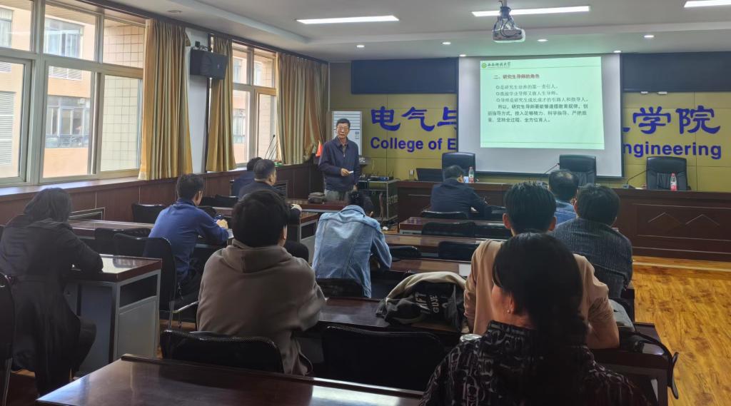 为进一步加强研究生导师队伍建设,强化导师立德树人职责,提升研究生培养质量,11月1日下午,开云官网在17教318会议室举办了学院研究生导师专题培训与交流会,校研究生教育督导组组长郭卫教授应邀为全院导师作了辅导讲座,学院班子成员、全体研究生导师、近三年新引进青年教师参加了培训。培训会由副院长潘红光主持。