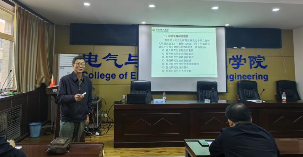 郭卫教授详细解读了教育部《关于全面落实研究生导师立德树人职责的意见》、《研究生导师指导行为准则》等文件要求,并从研究生导师的使命、职责、指导行为准则、论文指导等方面进行了深入阐述和案例分析。他指出,研究生导师是研究生培养的第一责任人,每位研究生导师都应切实把导师立德树人作为首要职责,以导师行为准则作为指导学生的行为准则,并着重分享了导师如何把好研究生学位论文质量关。他勉励研究生导师要做到政治素质过硬、师德师风高尚、业务素质精湛,坚持以德立身、以德立学、以德施教,努力做研究生成长的指导者和引路人。