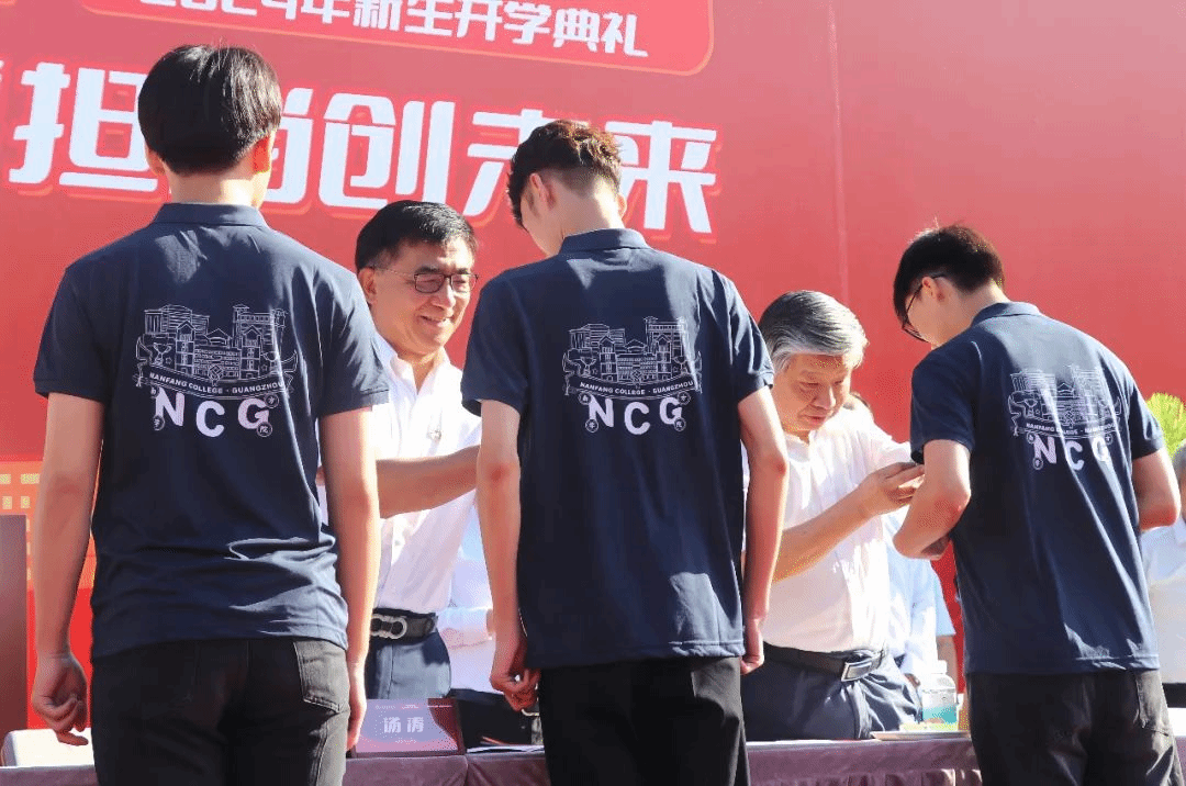 典礼现场进行了校徽佩戴仪式,由校领导亲手为新生代表佩戴校徽。仪式简短而庄重,寓意深远,宣示着又一批青春力量在南方学院走上奋进之路、逐梦之旅。