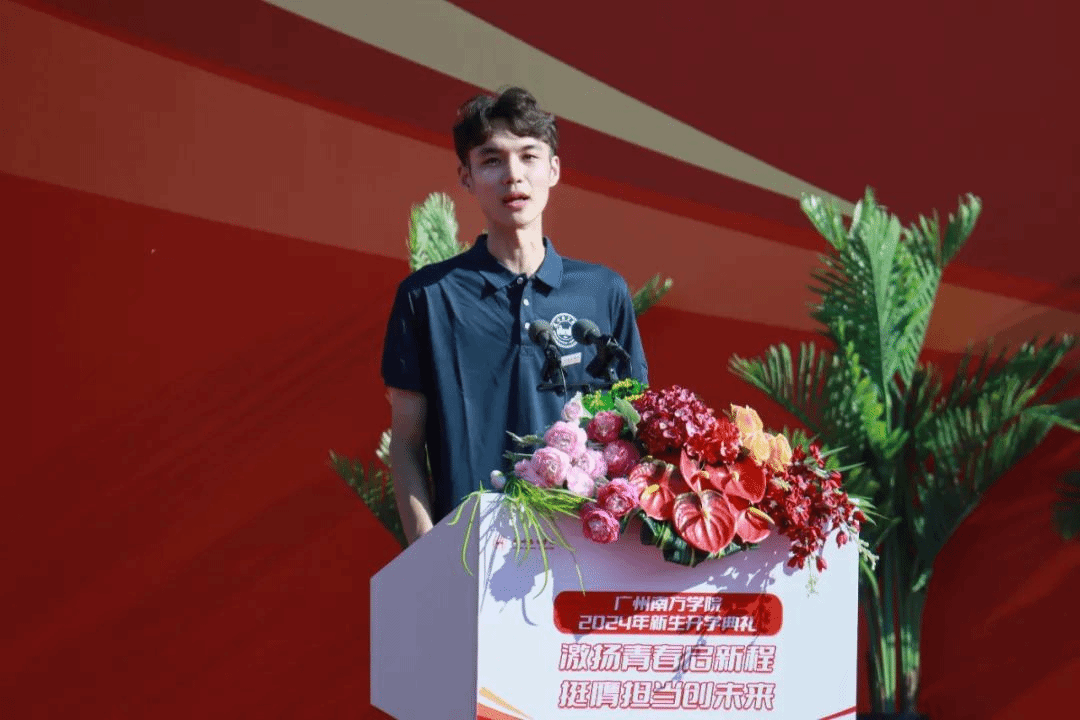 来自商学院2024级工商管理专业的林圳作为新生代表发言。他向同学们分享了他在专科时期的成长历程,并与同学们共勉:专升本的道路充满着挑战和艰辛,同学们仍要保持好奇的态度,视挑战为成长,不断探索自我、拓宽视野,全方位地发展自己。