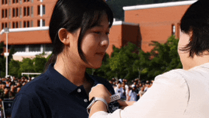 校领导为新生代表郑重佩戴上校徽,全体新生同步佩戴。谆谆教诲,殷殷期盼,共同开启充满荣光和梦想的远征。