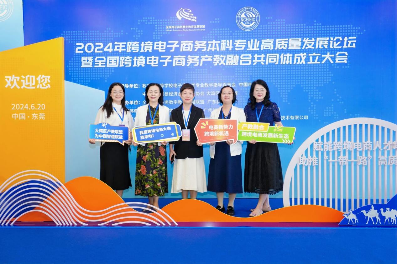 6月20日,在教育部高等学校电子商务类专业教学指导委员会(以下简称“电商教指委”)、中国市场学会、中国对外贸易经济合作企业协会、大湾区产教联盟指导下,2024年全国跨境电子商务本科专业高质量发展论坛暨全国跨境电子商务产教融合共同体成立大会在东莞举行。申搏教务处处长、电子商务专业带头人钟肖英教授及跨境电商课程负责教师陈潇副教授应邀参会。本次大会举办了全国跨境电子商务产教融合共同体成立仪式,发布了共同体的重点建设计划和倡议书,并举行了成员单位的授牌仪式。申搏被正式授牌,成为全国跨境电子商务产教融合共同体理事单位。