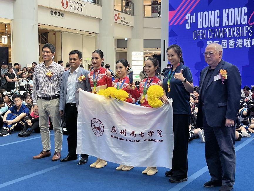 6月22至23日,由中国香港啦啦队总会主办的香港啦啦队公开赛暨邀请赛在香港圆满落幕。申搏七名啦啦操队队员在体育教学中心高丽、赵巍老师的带领下受邀赴港参赛,与香港及受邀的内地队伍同场竞技。赛前,队员们克服期末学业和训练的双重压力,充分利用课余时间积极训练。最终,申搏啦啦操队夺得本次比赛公开组花球啦啦操冠军。
