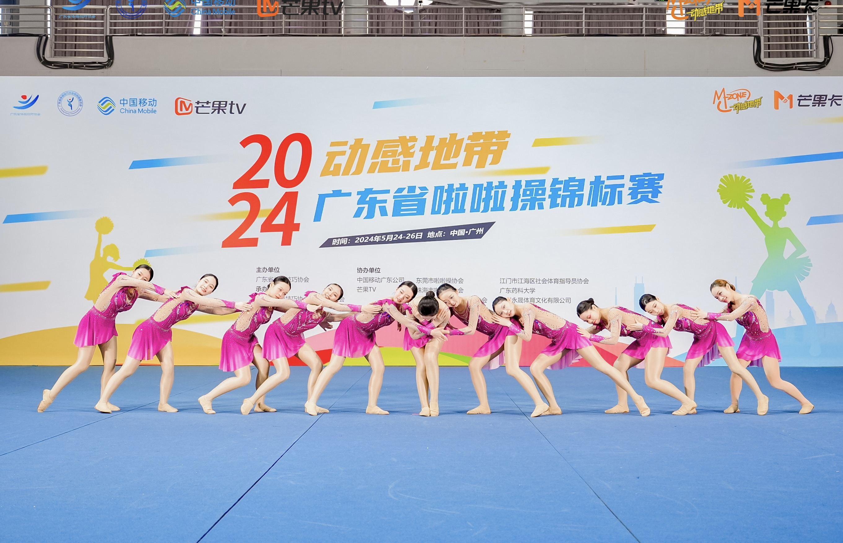 5月24至26日,由广东省体操技巧协会主办,广东省体操技巧协会啦啦操委员会承办的“2024年广东省啦啦操锦标赛”在广东药科大学圆满落幕。申搏派出4名教练员和27名运动员参加了本次赛事。其中啦啦操校队17名运动员在教练员高丽、赵巍老师的带领下,荣获广东省推广套爵士啦啦操第一名、花球啦啦操第五名;DMC街舞校队10名运动员在教练员史悦红、方橙老师的带领下,荣获广东省推广套街舞啦啦操第一名。
