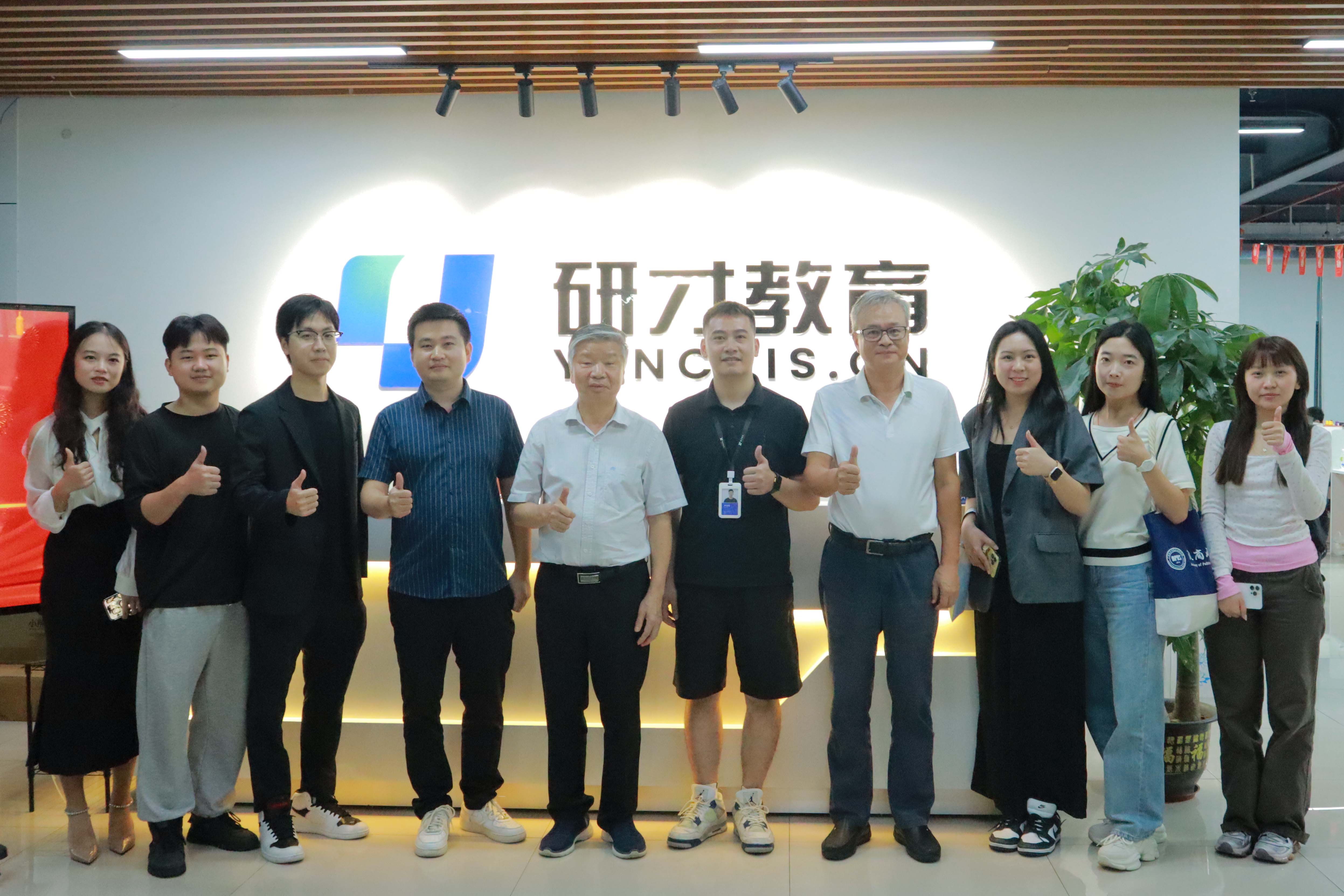 最后,李建超书记一行走访了商学院校友创办的广州研才文化传播有限公司。公司负责人李进煜校友详细介绍了研才教育的使命愿景和业务范围,以及面临的机遇和挑战。他表示,公司长期与母校保持合作,参与了两次校内招聘,希望未来能与母校进一步加强合作,为师弟师妹提供更多的实习实践机会,培养更多符合社会需求的高素质人才。