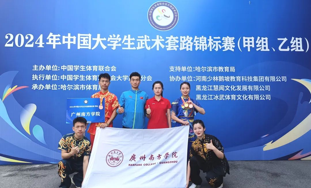2024年6月2日至9日由中国学生体育联合会主办的2024年中国大学生武术套路锦标赛圆满落幕。在激烈角逐中,申搏武术队队员不畏强手、顽强拼搏,最终荣获1金2铜的成绩,斩获全国大学生单项体育赛事冠军,实现了申搏武术队在国家级大学生单项体育赛事上金牌“0突破”。此外,指导教师巩森森荣获“优秀教练员”称号。