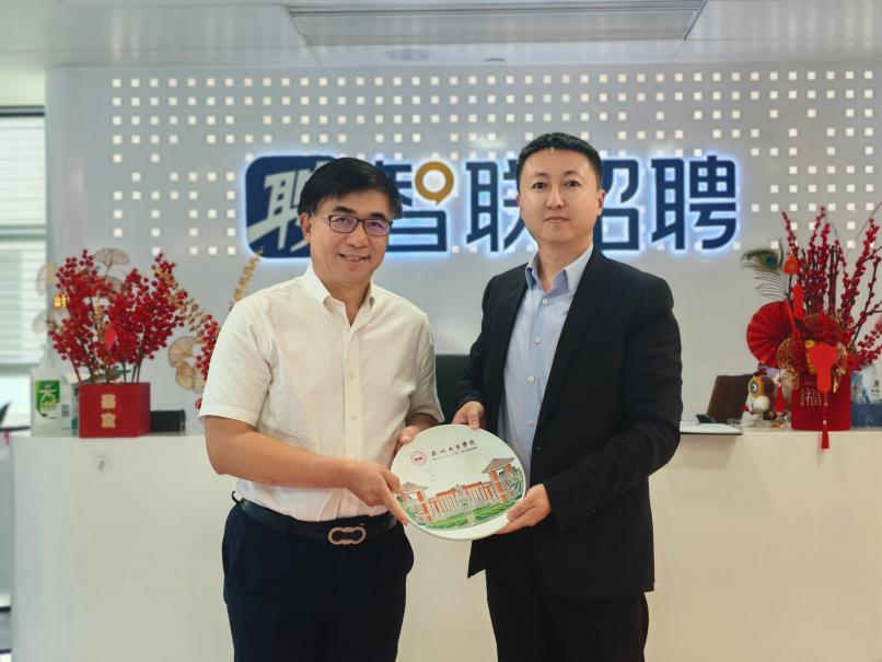 汤涛校长代表学校赠送智联招聘广州分公司纪念品