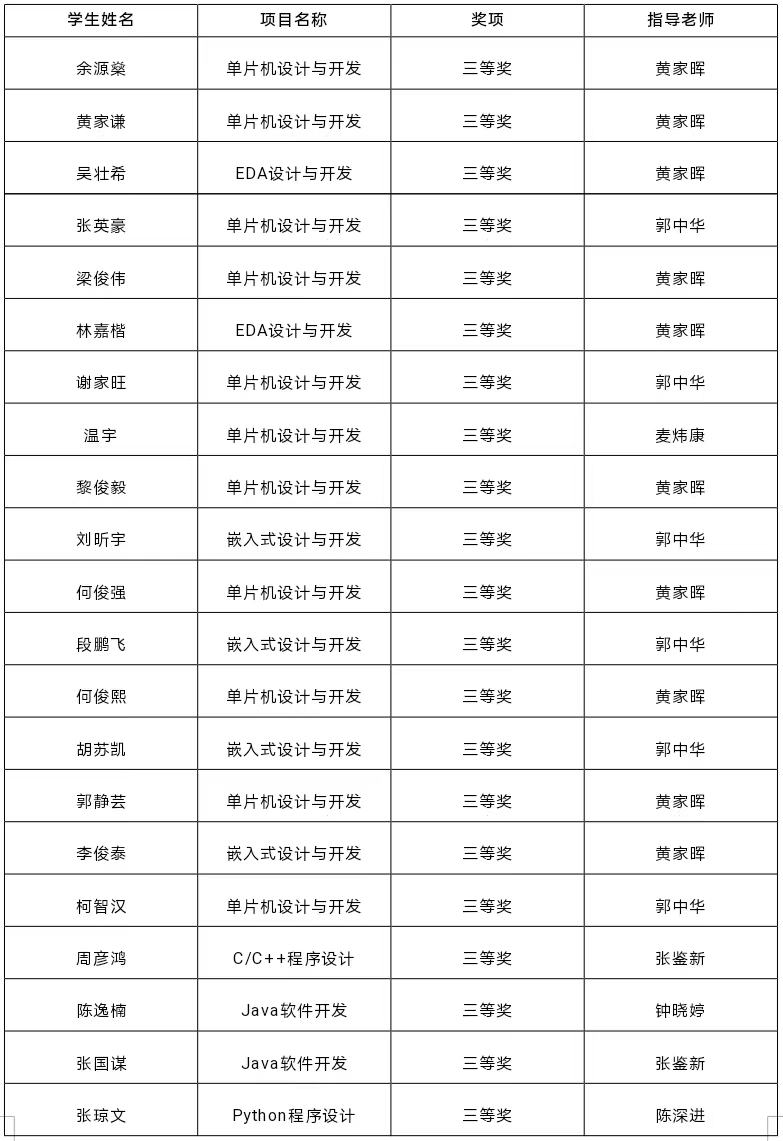 申搏历来重视各类学科竞赛,有计划地对学生进行培训、指导,让学生不断累积参赛经验,提升参赛水平。本次大赛由电气与计算机工程学院苑俊英、陈深进、郭中华、罗国、张鉴新、曹红杏、黄家晖、高骥忠、钟晓婷、梁进良、王鲁赣、麦炜康等教师担任指导老师,赛前组织参赛学生进行了针对性的专题训练,有效提高了参赛学生的专业技能和竞争能力。