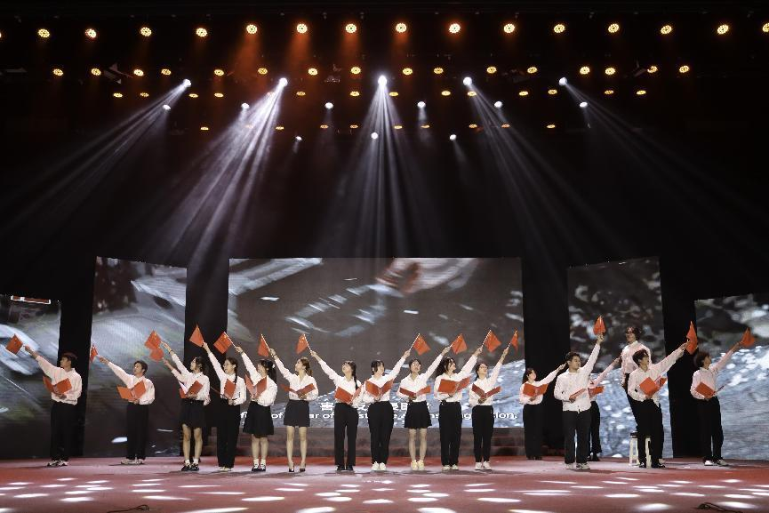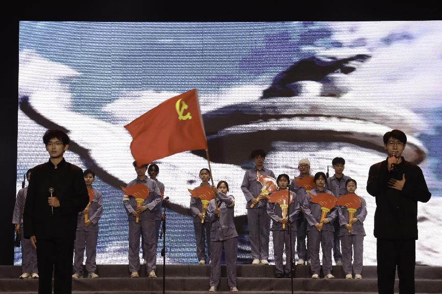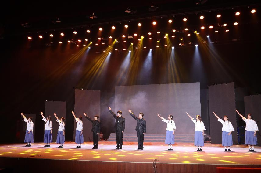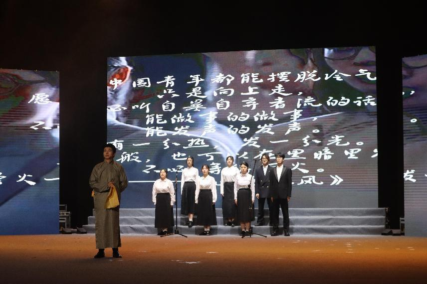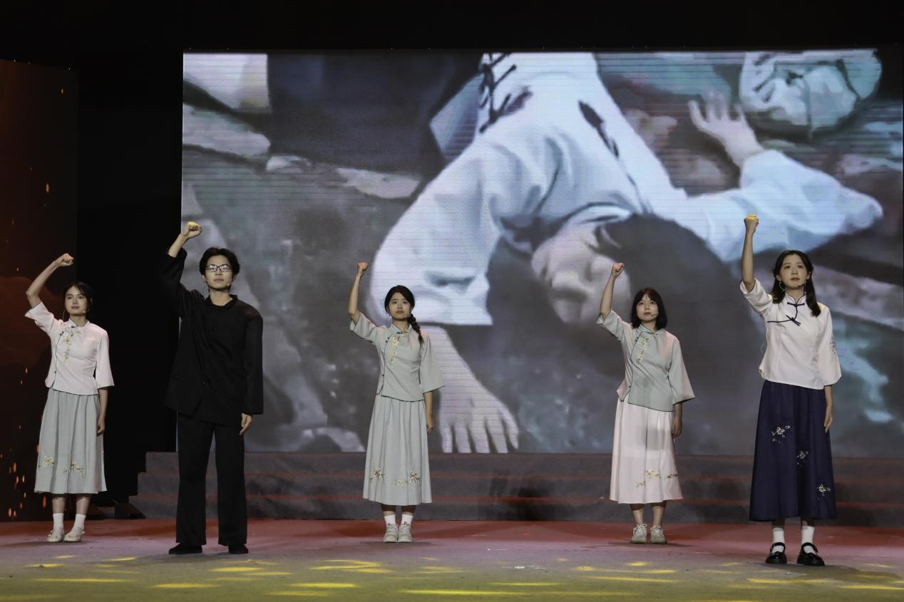 “长亭外,古道边 ”,伴随着悠扬笛声,1号团队情绪饱满、铿锵有力地叙述了一百年前的青年前赴后继、心怀家国、挥洒青春书写中华民族崭新篇章的热血故事。