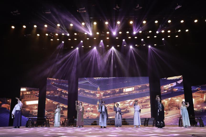政商研究院带来的英歌舞表演拉开了中华经典诵读大赛的序幕。伴随着震撼有力、激昂高亢的鼓声,政商研究院英歌舞队从观众席两侧通道“洗街”至舞台上,他们身着戏服、面化梁山好汉脸谱,木槌对击、燕子翻身、阵型变换,力量与美感无不展示着“中华战舞”这一非物质文化遗产的独特魅力。