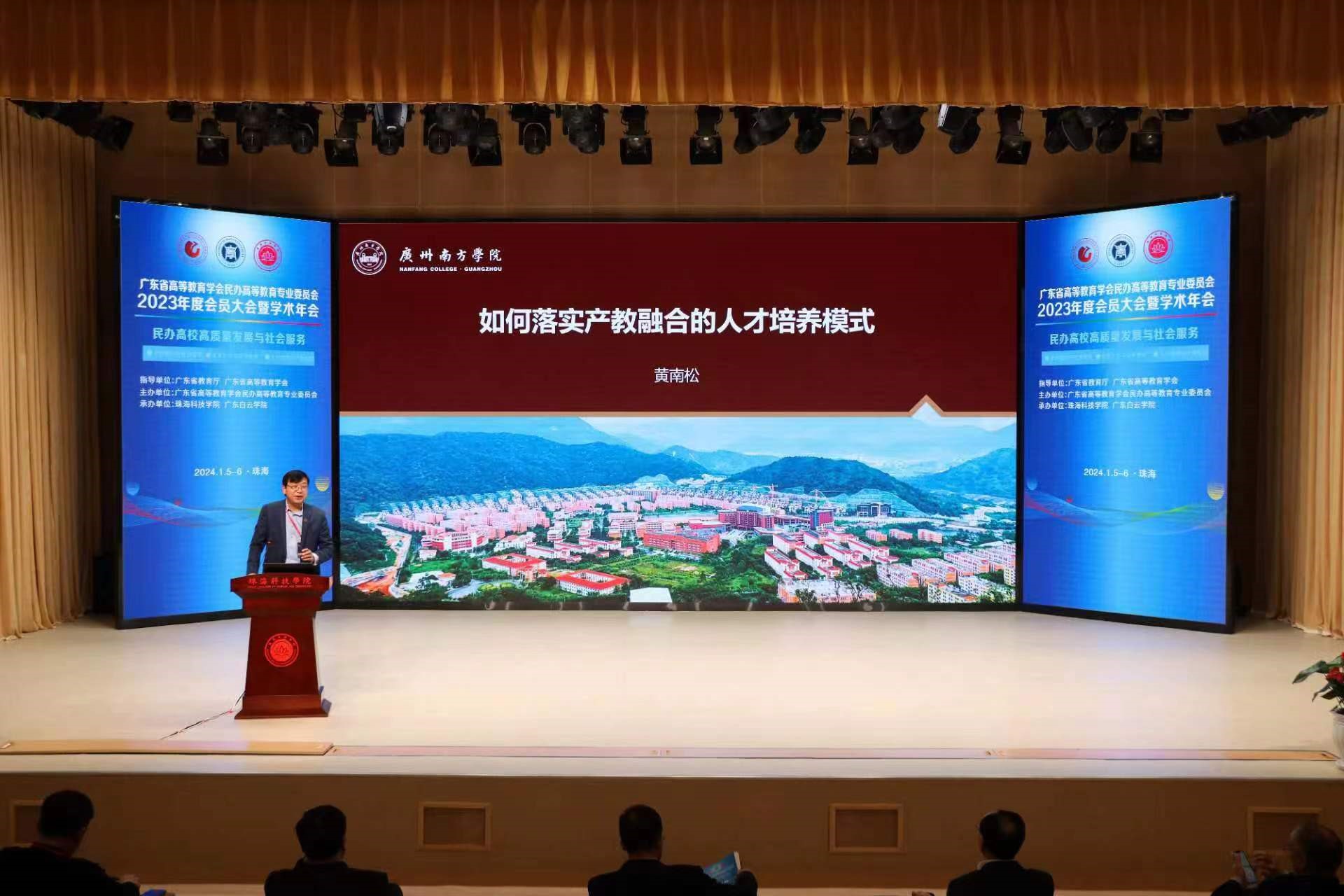1月6日,广东省高等教育学会民办高等教育专业委员会2023年度会员代表大会暨学术年会在珠海科技学院召开。会议由广东省高等教育学会指导,广东省高等教育学会民办高等教育专业委员会主办,珠海科技学院、广东白云学院联合承办。广东省高等教育学会常务副会长汤贞敏、秘书长贺义梅,学会副会长、专委会理事长黄大乾,珠海科技学院党委副书记、校长刘鸣,华南农业大学副校长咸春龙等出席会议。专委会副理事长、SUNBET申搏副校长黄南松教授、专委会理事严五胤、张玉冰参加了会议。来自全省民办高校、部分公办高校和企业的会员代表近百人参加会议。
