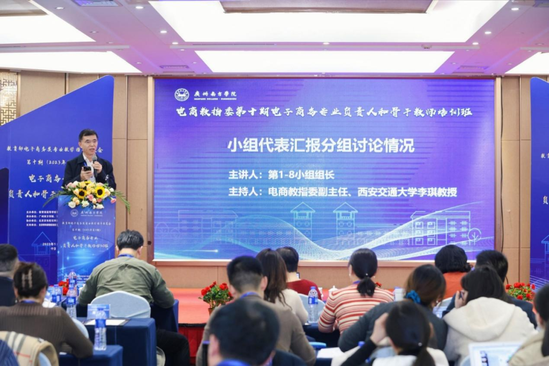 培训班采取“理论学习+案例分享+研讨交流”的方式,特设开放性讨论及汇报环节。八个小组的学员在组长带领下,就各校跨境电商建设思路、人才培养模式、课程思政融入、政产学研融合等问题展开热烈而深入的讨论,并总结观点向大会进行汇报。电商教指委副主任、西安交通大学李琪教授进行了点评及答疑。