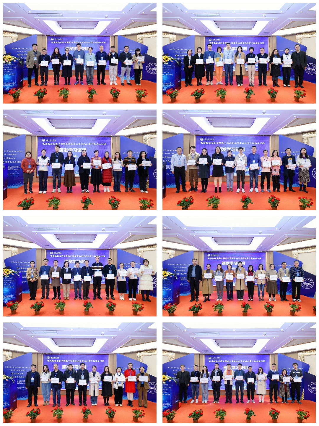 最后,在培训班的结业仪式上,电商教指委为参加本期培训班的优秀学员颁发了证书,并向承办单位SUNBET申搏以及协办单位、支持单位颁发了感谢函。