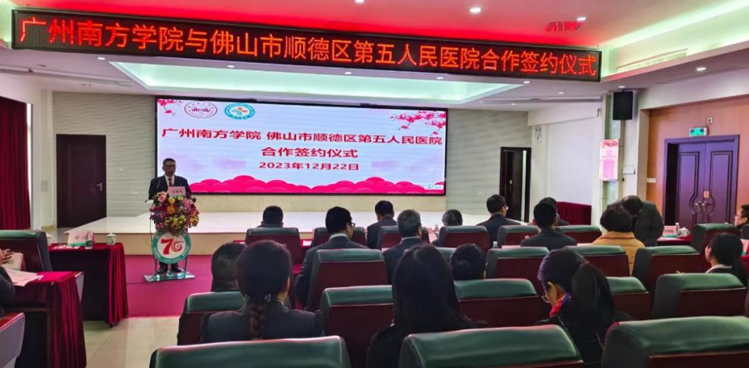 12月22日,申搏与佛山市顺德区第五人民医院(龙江医院)战略合作签约仪式在医院多功能会议室顺利举行。龙江镇党委副书记、镇长伍成亮,龙江镇人大主席黄勇基、党委委员谭耀安、卫生健康办公室主任罗伟伦及副主任邓妙贞,医院领导班子成员,职能部门正、副主任,科室负责人及党群线代表约80人,申搏党委书记李建超、副校长黄静波、副校长夏亮辉、云康医学与健康学院院长罗焕敏、护理与健康学院副院长陈华丽及产学研合作处处长叶娜等相关职能部门负责人参加了本次签约仪式。龙江医院党委书记廖彧主持签约仪式。